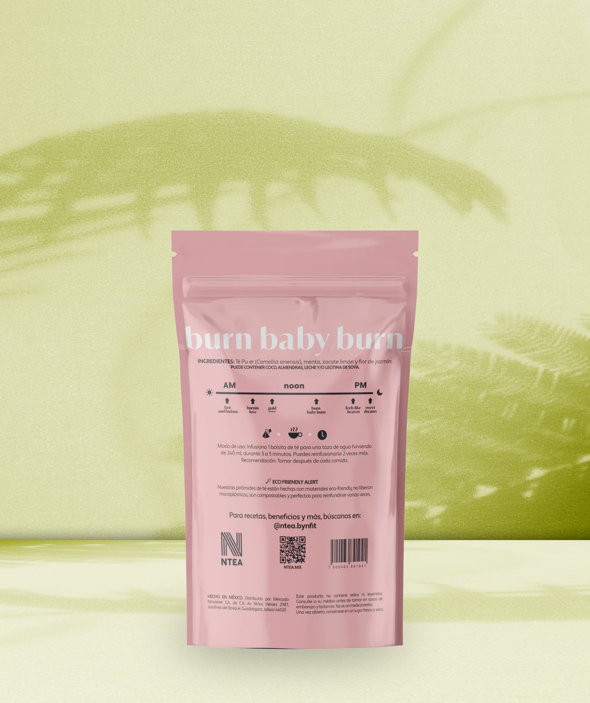 Té Puherh con zacate de limón, menta y flores de Jazmín.