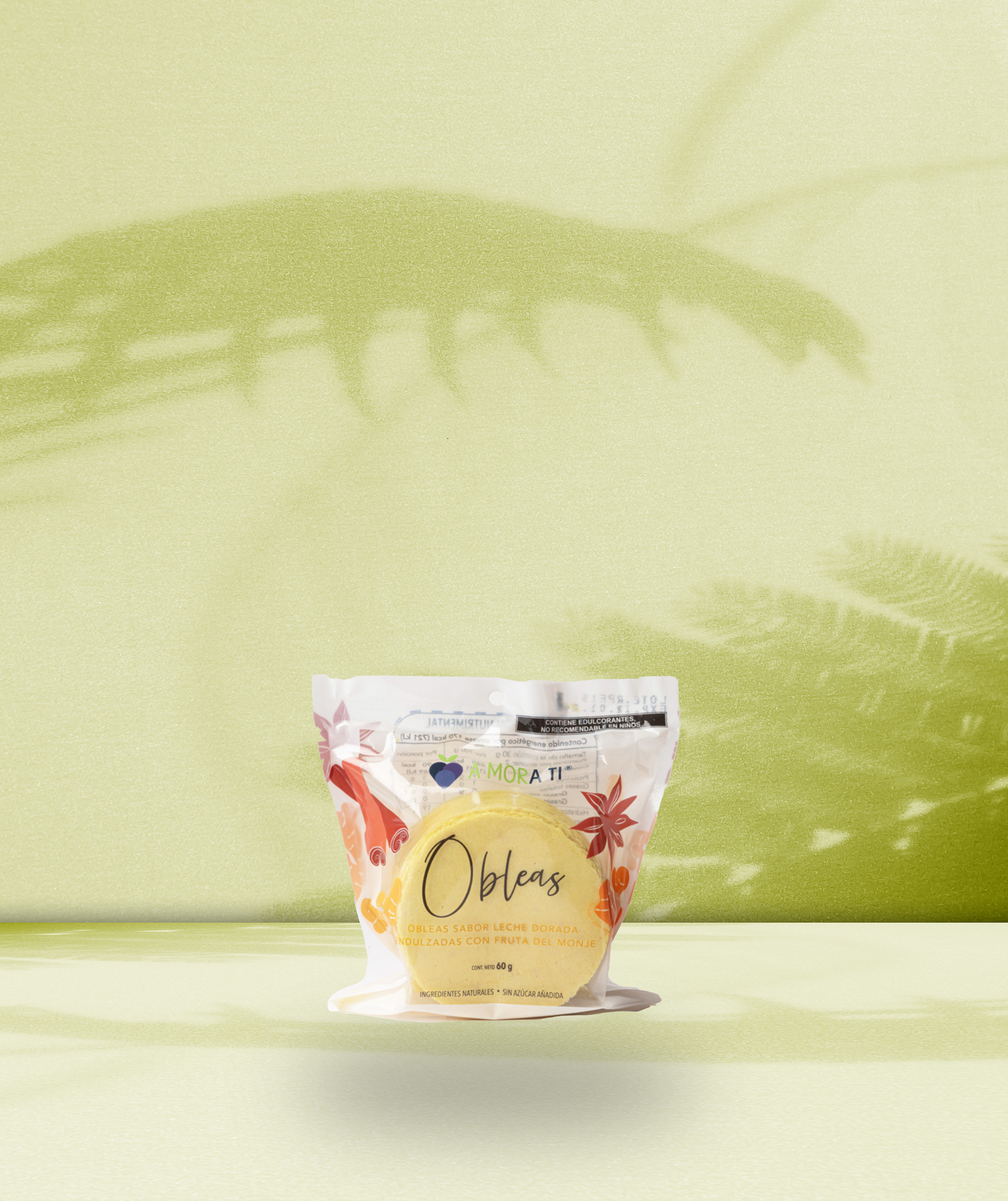 Obleas artesanales con amaranto sabor leche dorada, endulzada con fruto del monje.